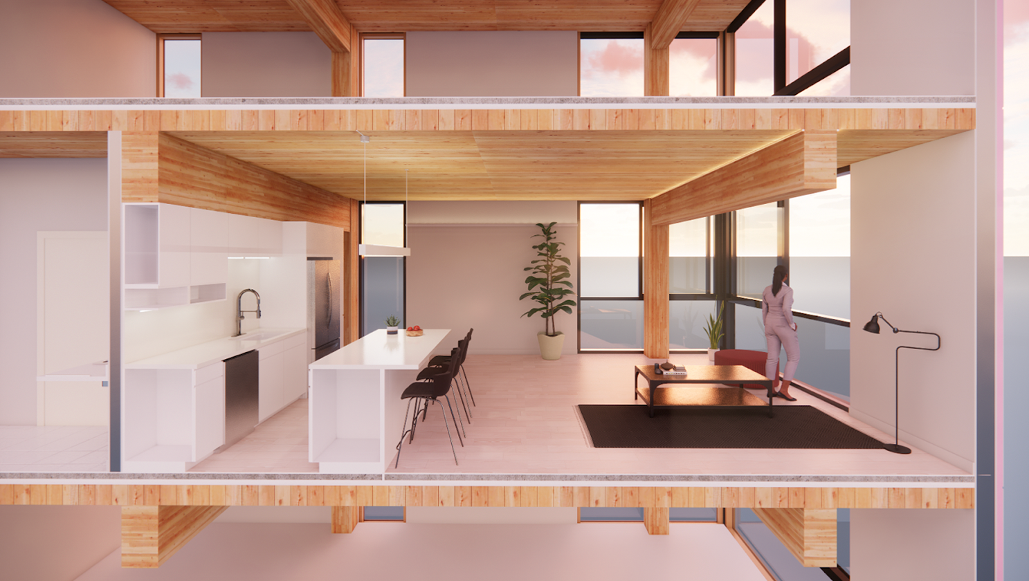 This cutting-edge project aims to maximize a small, urban-infill lot to add both density and value to the neighborhood. In a market where new development can feel like a commodity, Return to Form aims to rediscover a human-centric, community-focused approach to design. Some of Denver’s most desirable buildings are old brick and timber lofts found in LoDo along Wynkoop Street. Further north on Wynkoop Street in the heart of RiNo, Return to Form seeks to create a modernized version of these timeless buildings. Residents will experience a biophilic living environment surrounded by warm, natural wood harvested from U.S. Forests.