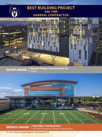 BEST BUILDING PROJECT $40-70M GENERAL CONTRACTOR Hensel Phelps Construction Co. SILVER AWARD | 50Fifty BRONZE AWARD | UCHealth Steadman Hawkins Clinic Denver Haselden Construction 70 AGC Colorado Annual Magazine | ACE Awards 2019